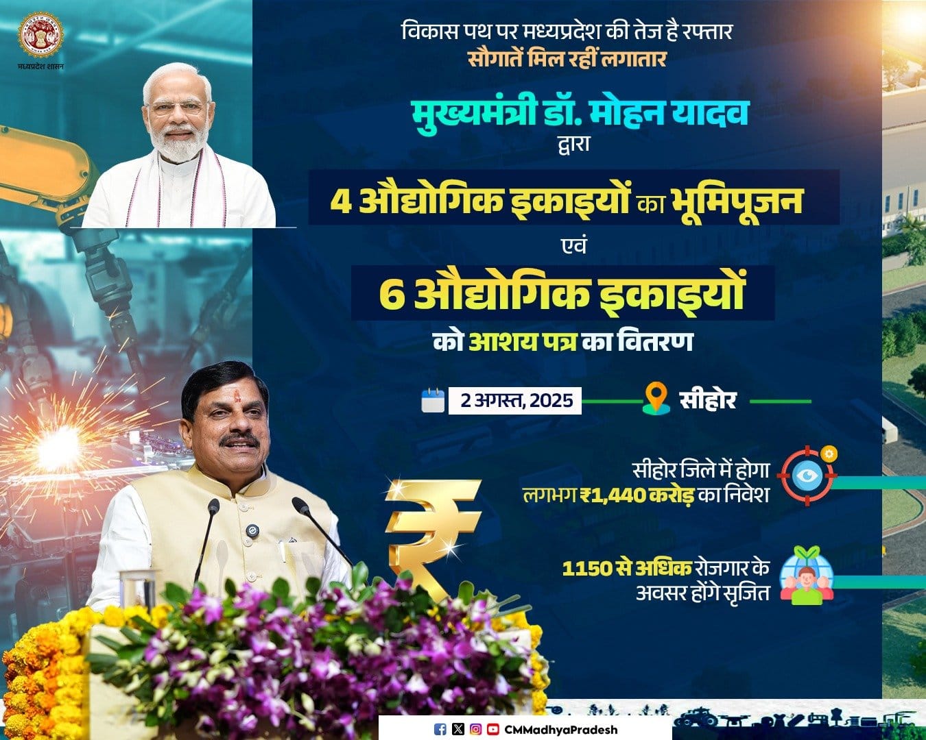 मुख्यमंत्री डॉ. यादव सीहोर में 2 अगस्त को 4 औद्योगिक इकाइयों का करेंगे भूमि-पूजन