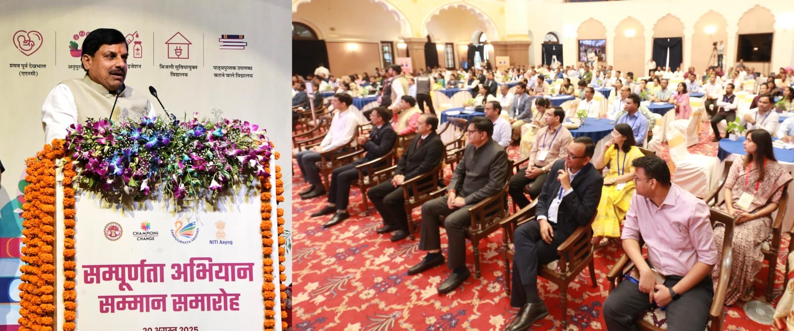 यह बात मुख्यमंत्री डॉ. मोहन यादव ने भोपाल में 20 अगस्त को कही। सीएम डॉ. यादव कुशाभाऊ ठाकरे सभागार में आयोजित ‘सम्पूर्णता अभियान सम्मान समारोह’ को मुख्य अतिथि के रूप में संबोधित कर रहे थे। उन्होंने कहा कि हम मध्यप्रदेश को देश में नंबर-1 बनाने की योजना पर काम कर रहे हैं। उन्होंने नीति आयोग से कोदो-कुटकी का फसल के रूप में दस्तावेजीकरण करने की बात भी कही। इस मौके पर सीएम डॉ. यादव ने मध्यप्रदेश में बेहतर काम करने वाले जिलों और विकासखंडों को सम्मानित भी किया।
