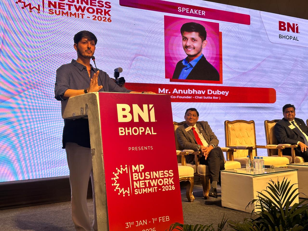 भोपाल। बिजनेस नेटवर्क इंटरनेशनल (बीएनआई) भोपाल चैप्टर द्वारा आयोजित एमपी बिजनेस नेटवर्क समिट 2026 का समापन रविवार को हुआ। दो दिवसीय इस समिट ने मध्यप्रदेश के उभरते स्टार्टअप्स, उद्यमियों और बिजनेस लीडर्स को एक ऐसा मंच दिया, जहाँ अनुभव, नेटवर्किंग और भविष्य की रणनीतियों पर खुलकर संवाद हुआ। अंतिम दिन बिजनेस नेटवर्किंग, लोकलाइज्ड ग्रीन ट्रांजिशन और आर्टिफिशियल इंटेलीजेंस (एआई) इन बिजनेस जैसे विषयों पर पैनल डिस्कशन आयोजित किए गए, जिनमें बदलते कारोबारी परिदृश्य पर गहरी चर्चा हुई। चाय सुट्टा बार के फाउंडर अनुभव दुबे ने जर्नी ऑफ बिल्डिंग एन इंडियन ब्रांड विषय पर चर्चा की। अनुभव दुबे ने बताया कि उनका जन्म रीवा के एक मध्यम वर्गीय परिवार में हुआ, जहां पिता की इच्छा थी कि वे पढ़-लिखकर आईएएस बनें। लेकिन मंच पर अपने विचार रखने की चाह उन्हें बचपन से ही अलग बनाती थी। उन्होंने कहा कि स्कूल में थॉट ऑफ द डे पढ़ने के बजाय वे अपने शब्दों में बात करना चाहते थे। पढ़ाई के बाद वे इंदौर आए और वर्ष 2015 में बिना परिवार को बताए गर्ल्स हॉस्टल के पास एक छोटी सी चाय की दुकान शुरू की। हमारा टारगेट जेन-जी था, इसलिए नाम रखा चाय सुट्टा बार रखा। उन्होंने कहा कि शुरुआत में उन्हें सामाजिक आलोचना, असफलता की भविष्यवाणियां और यहां तक कि नारकोटिक्स विभाग की कार्रवाई जैसी चुनौतियों का सामना करना पड़ा, लेकिन उन्होंने इसे अपने सफर का हिस्सा माना।